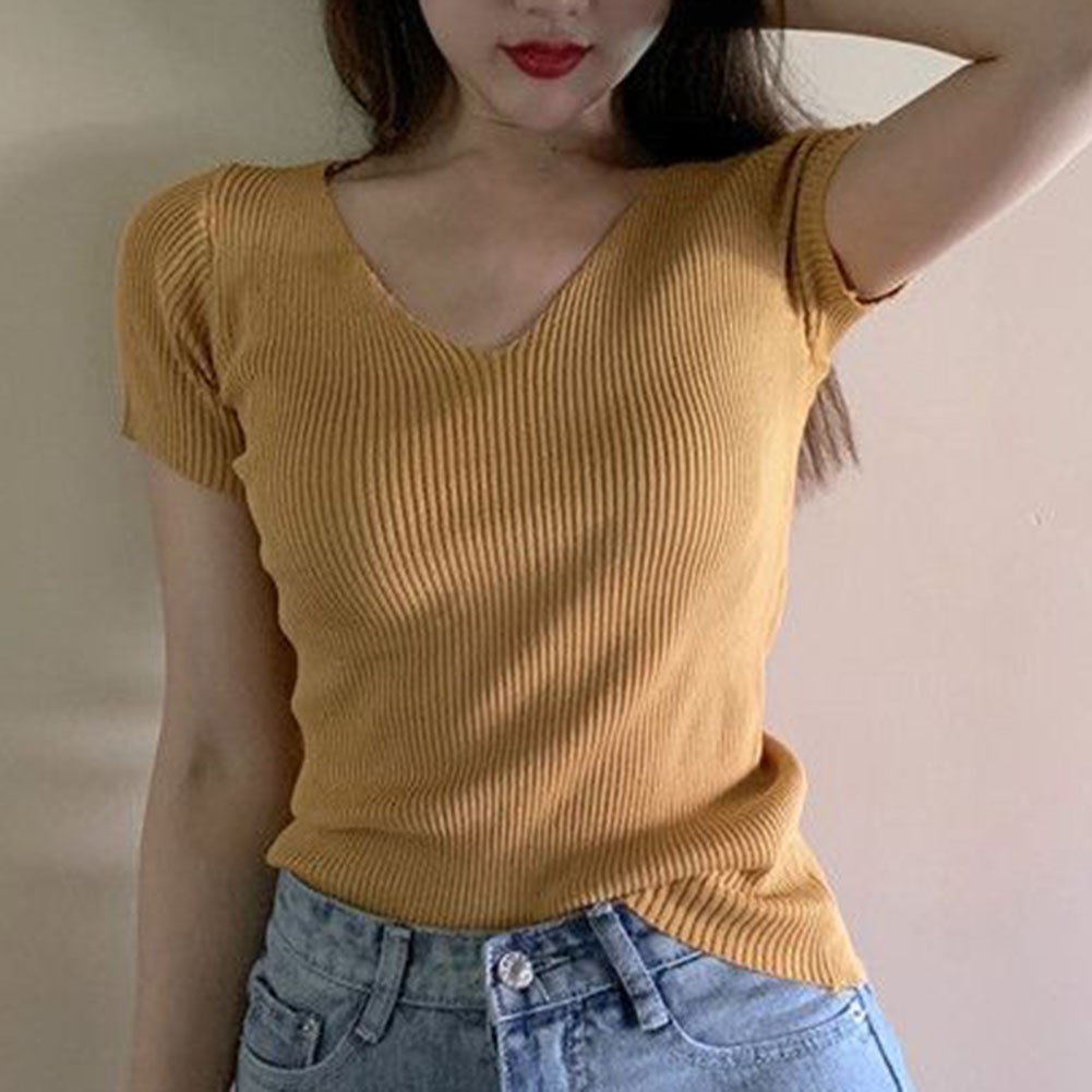 T-Shirt Femme En Coton Élasthanne À Col V