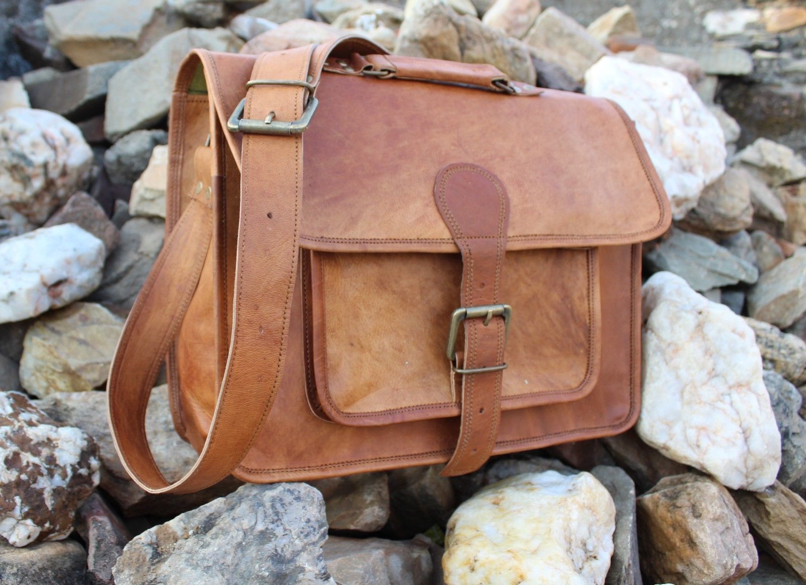 Sac messager 100 % cuir de chèvre véritable avec une doublure intérieure durable en toile. Conçu pour transporter des ordinateurs portables, des onglets, des documents ou autres effets personnels, etc. Un véritable produit fabriqué à la main en cuir naturel. Des huiles naturelles et de la lumière ont été utilisées pour obtenir le style du cuir – sans produits chimiques ! Ce sac présente un merveilleux look unique et vintage, conçu pour transporter des mini ordinateurs portables, des onglets, documents, effets personnels, etc. Parfait pour le bureau, l'école ou comme cadeau ! Fabriqué à partir de cuir de chèvre 100 % véritable, solide, léger et durable, tanné sans produits chimiques. grand compartiment intérieur pour transporter des fichiers, des mini-ordinateurs portables, des onglets, e.