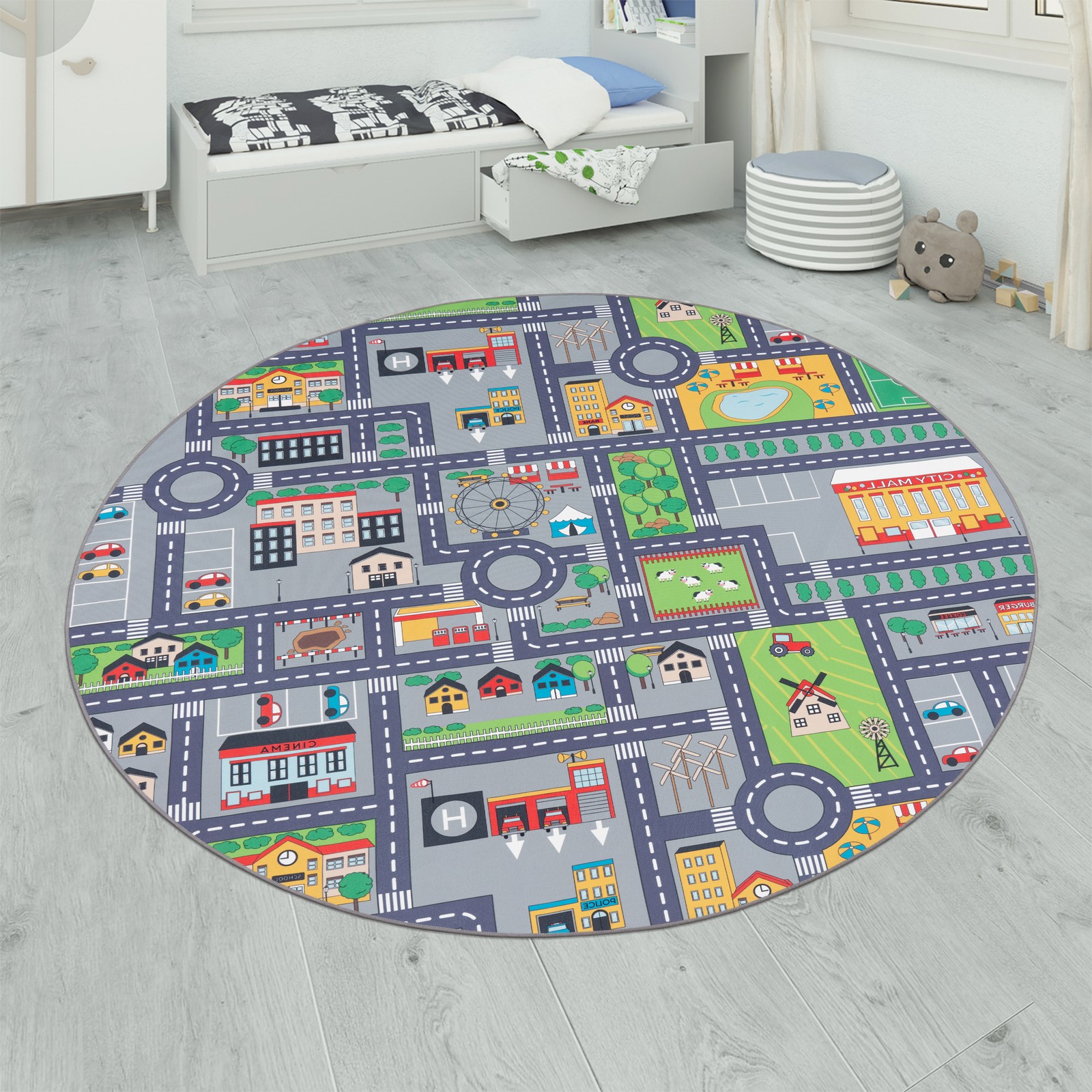 Tapis De Jeu Tapis Pour Enfants Chambre D'Enfant Motifs Rues Avec Voiture, Gris