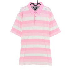 ADIDAS Polo Manches Courtes Rayé Rose Blanc S Performance Golf