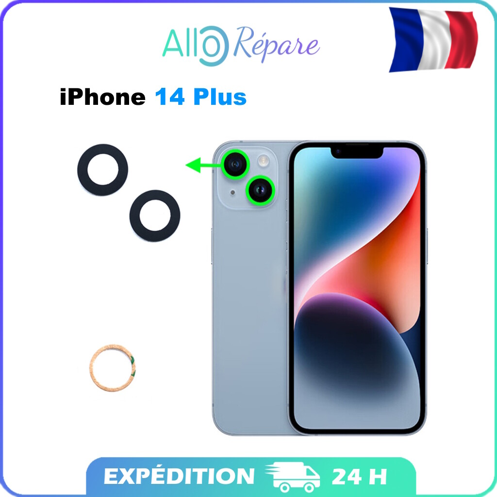 Vitre / lentille de caméra arrière d'appareil photo fournis avec adhésifs qualité ORIGINAL NEUF. iPhone 14 Pro Max. iPhone 14 Pro. iPhone 14 Plus. Liste non exhaustive donnée à titre indicatif. Réserver pour une installation professionnel.