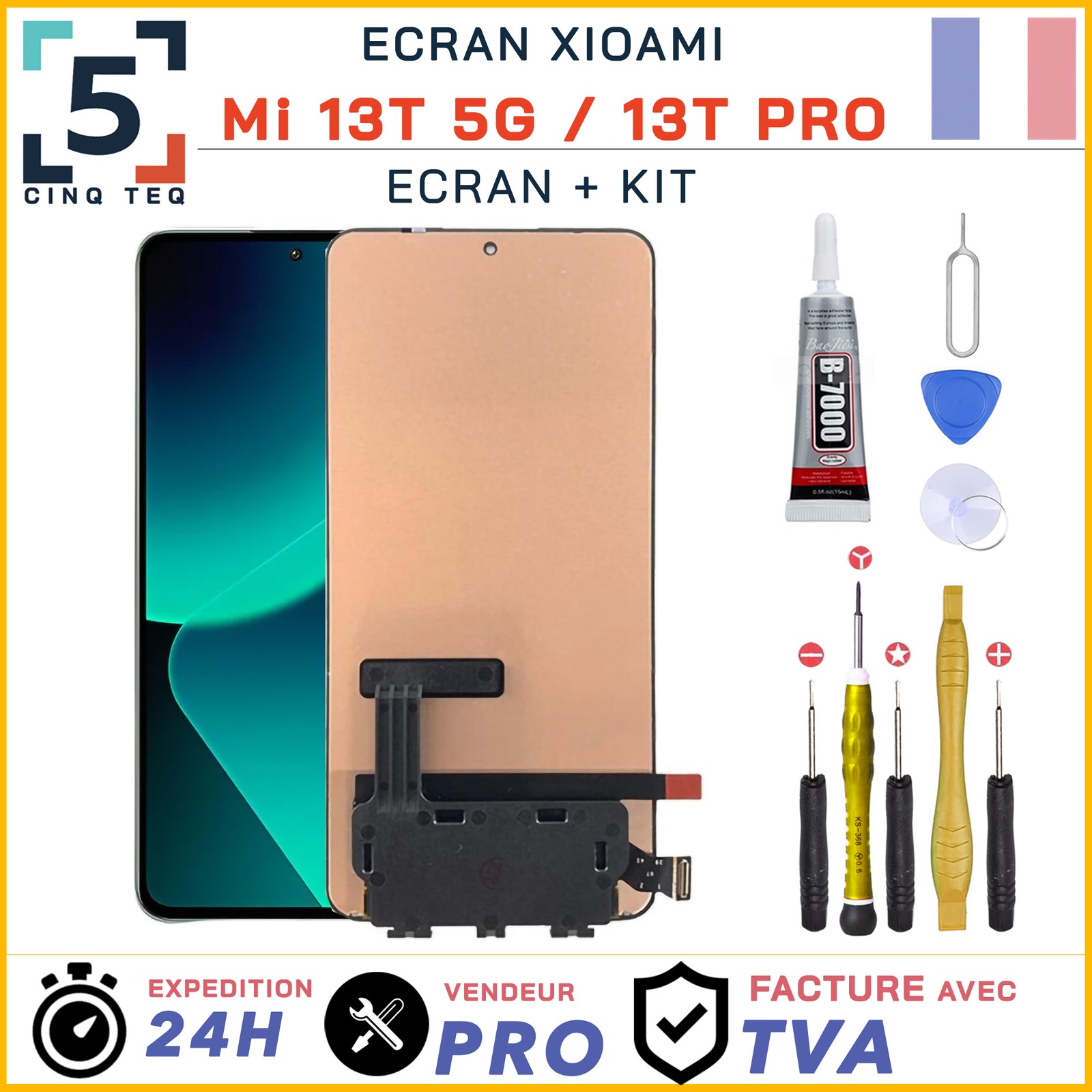 Compatible avec: XIAOMI Mi 13T / MI 13T Pro Models: 2306EPN60G, 23078PND5G La colle et les outils pour l'installation sont fournis avec l'écran.