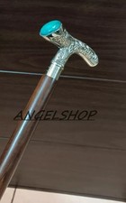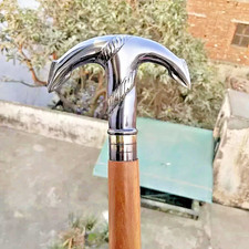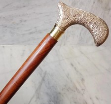 Canne bâton de marche en bois laiton poignée tête victorienne ancienne...