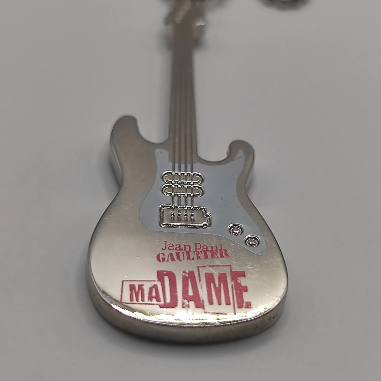Jean Paul Gaultier Ma Dame perfume necklace Electric guitar pendant. The chain is about 58 cm / 22.8 inches long. The guitar pendant is about 6 cm / 2.4 inches long. The necklace is in very good condition. International buyers please note: - Import duties, taxes and charges aren't included in the item price or postage cost. These charges are the buyer's responsibility.