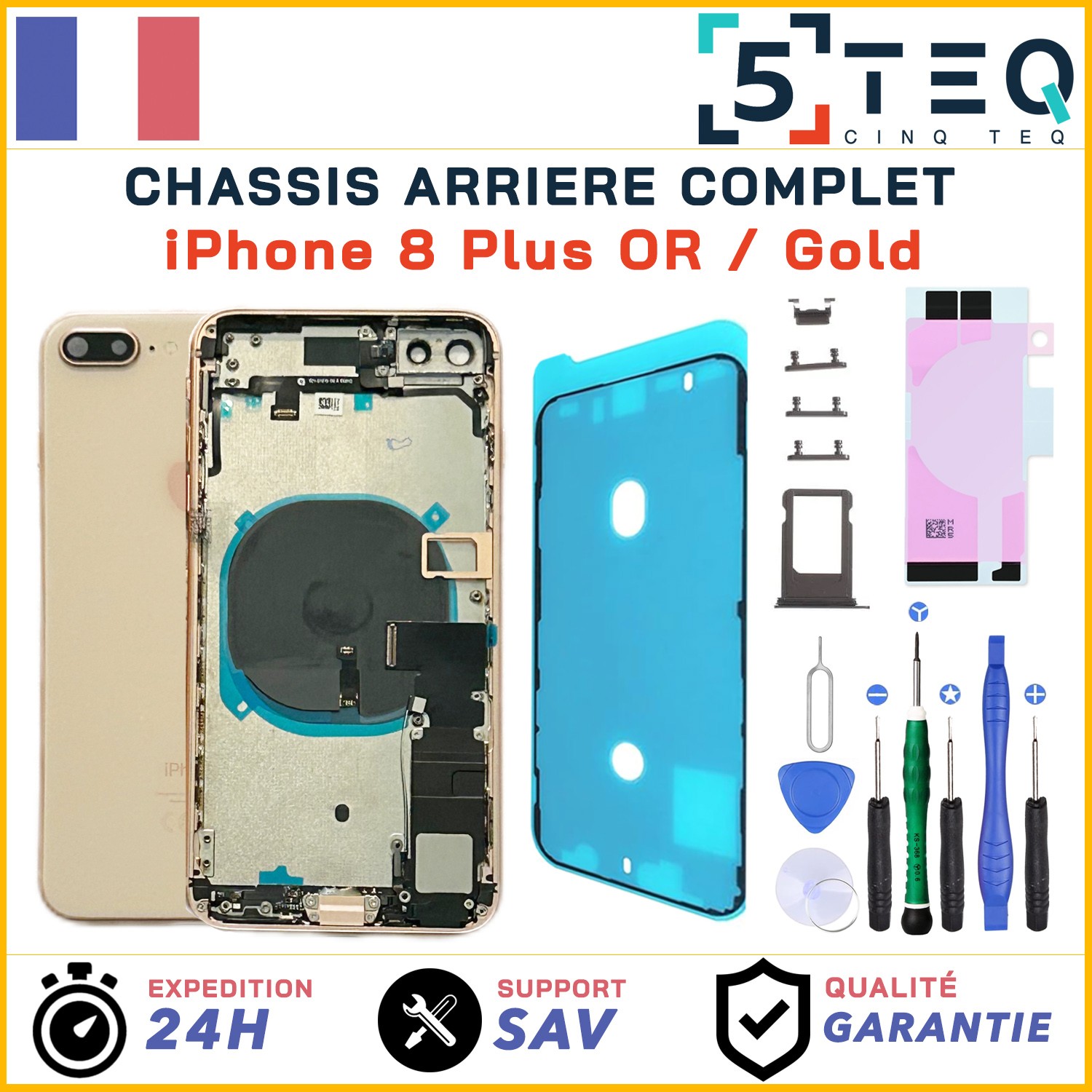 Chassis Complet Remplacement pour iPhone 8 Plus Or / Gold Premonte + NFC + Kit