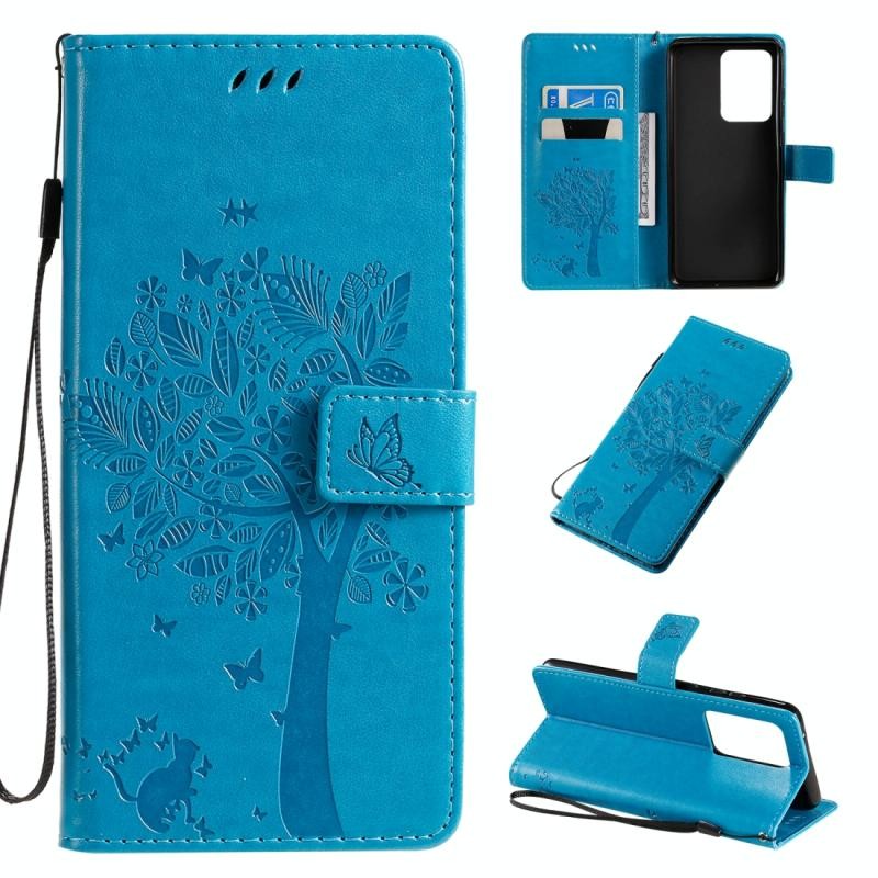 Étui en cuir PU pour Galaxy S20 Ultra Tree & Cat Pattern avec impression de près
