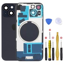 Vitre Arriere +Plaque metallique pour iPhone 14 Noir Minuit +Aimants Autocollant