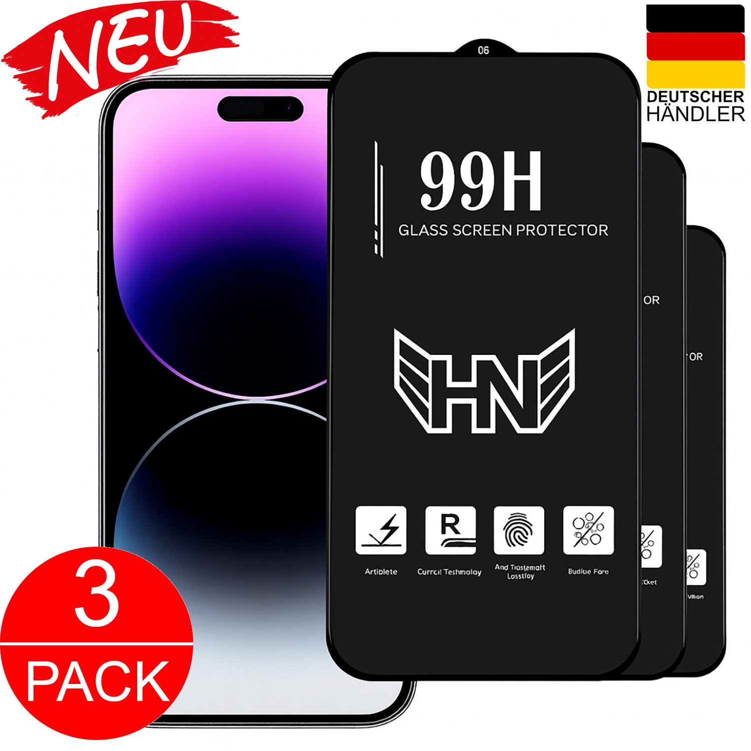 3X PROTECTION ÉCRAN EN VERRE PLEIN HAUT EN ALUMINIUM POUR IPHONE 15 PRO MAX