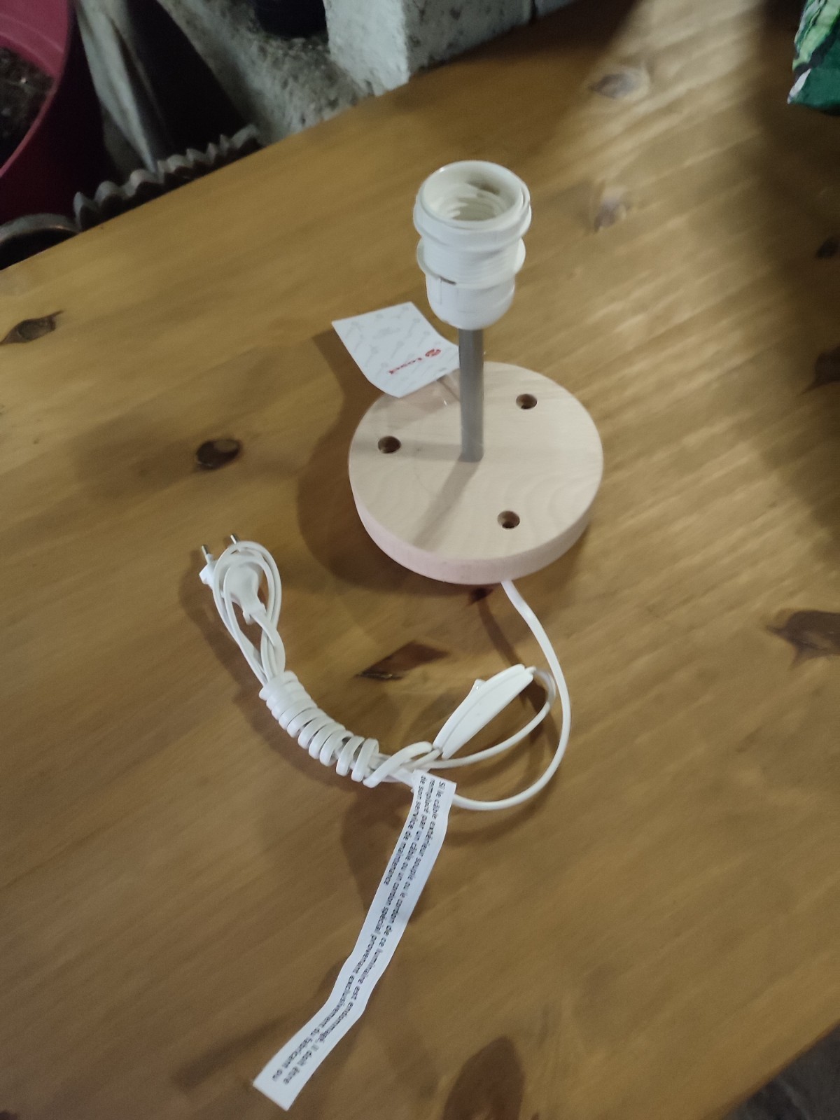 Base en bois. Diamètre base 13,5 cm. Fiche EU/FR.