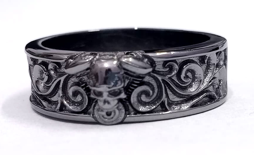 Matériaux : argent sterling 925. Taille de bague - 3 à 16 disponibles chez nous. Style : crâne gothique gravé. Poinçonnage - Oui.