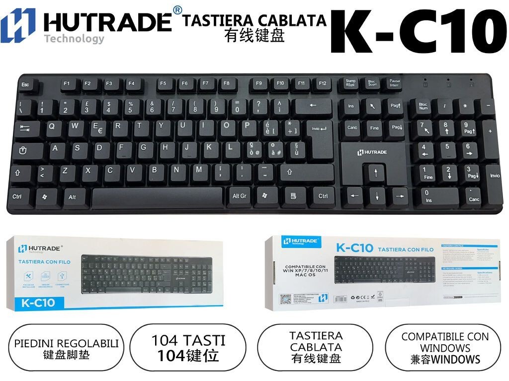 Ce clavier filaire est la solution idéale pour ceux qui recherchent un produit fiable et fonctionnel pour un usage quotidien. Avec son design classique à 104 touches et sa disposition italienne, il s'intègre parfaitement dans n'importe quel poste de travail ou station de jeu. La connexion USB plug-and-play facilite l'installation et l'utilisation, sans avoir besoin de pilotes supplémentaires. Pieds réglables : Permettent d'incliner le clavier pour une position de frappe optimale. Installation facile : connectez simplement le clavier au port USB de votre ordinateur et commencez à l'utiliser. Ceux qui recherchent un clavier simple, fiable et compatible avec différents systèmes d'exploitation. Ne manquez pas cette offre ! Achetez dès maintenant le clavier filaire HUTRADE K-C10 et profitez d'u.
