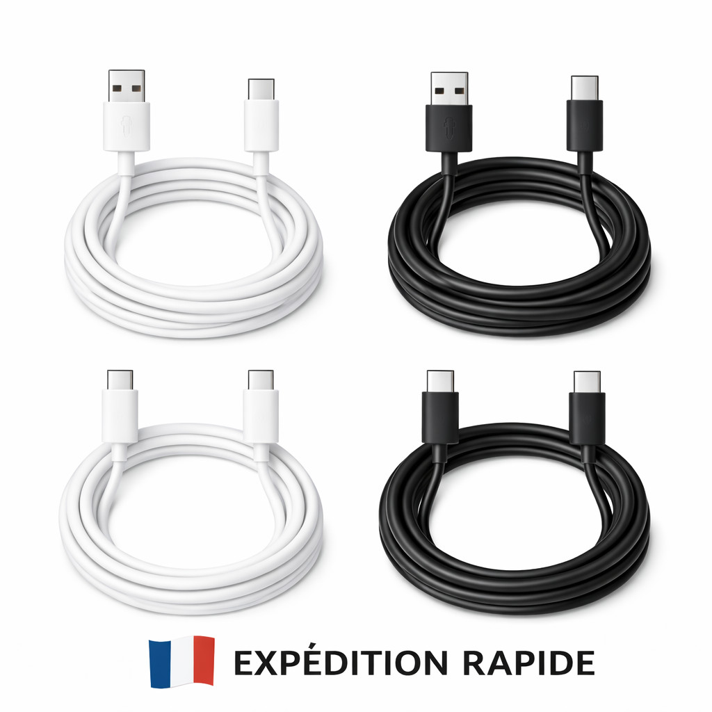 Cable Chargeur Cordon de charge USB to USB-C USB-C to USB-C 1m 2m