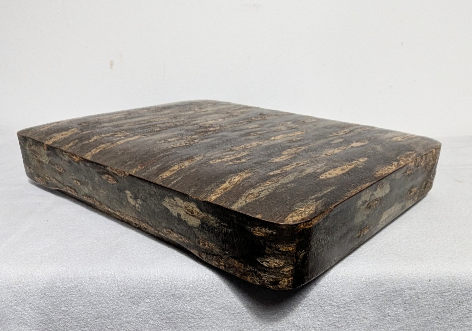 Veinage brun moucheté très décoratif, belle patine ancienne. Longueur : 25 cm. Largeur : 20 cm. Hauteur : 3,7 cm. Très bon état général. Quelques légères traces d’usage normales pour l’âge. Pas de fissure ni déformation.