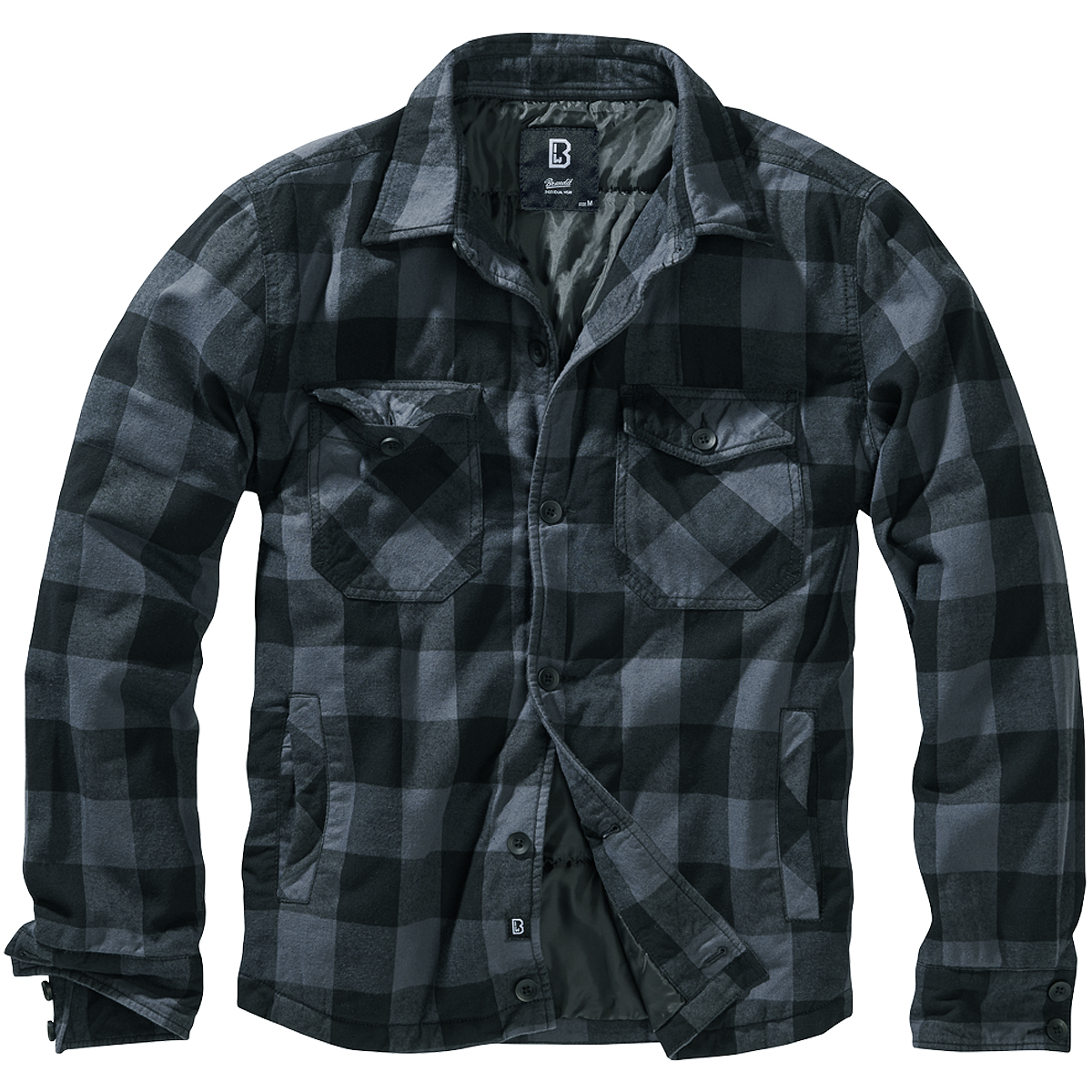 Brandit Lumber Veste Homme Manteau Rembourrée Chemise À Carreaux Chaud Noir Gris