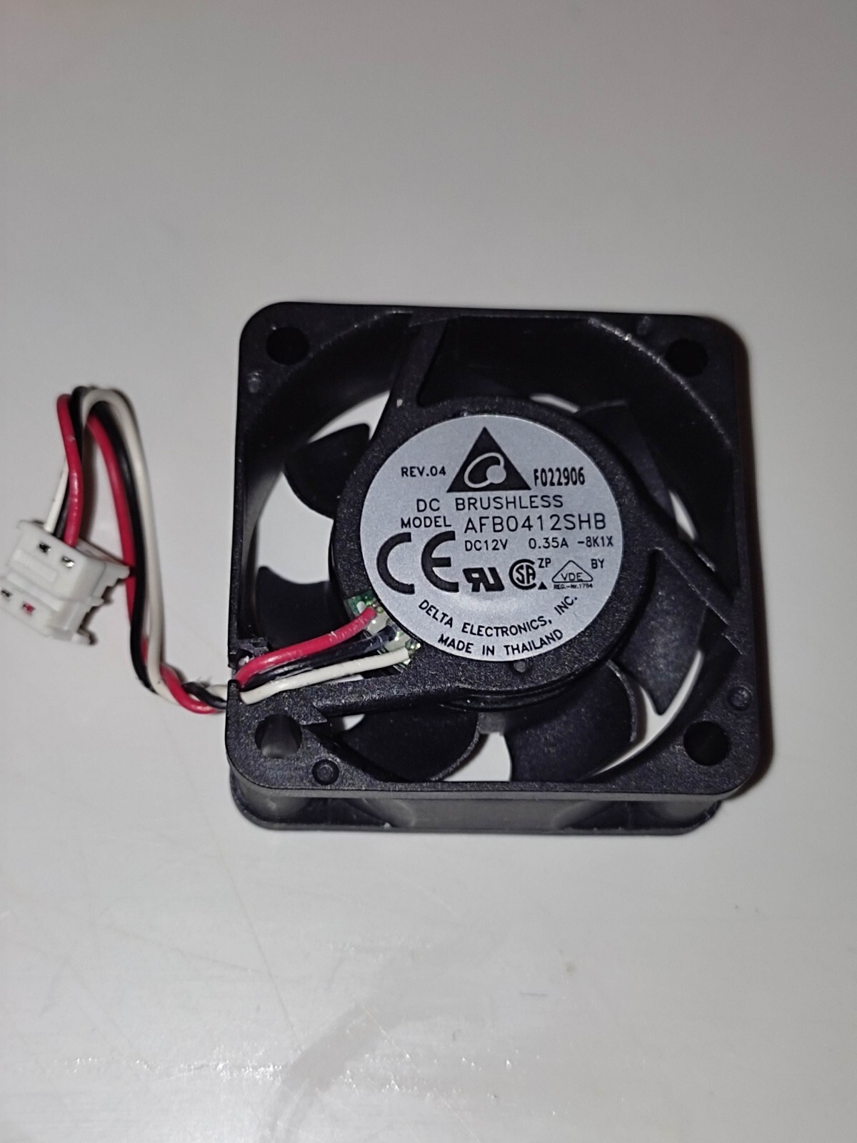 Fiche techniqueDELTA AFB0412SHB 12V 0,35A. Modèle: AFB0412SHB. Tension: 12V. Type De Ventilateur: Axial. Palier: Ball Bearing. Débit D'air: 14.8 CFM (0.419 m³/min). Vitesse: 11000tr/min.