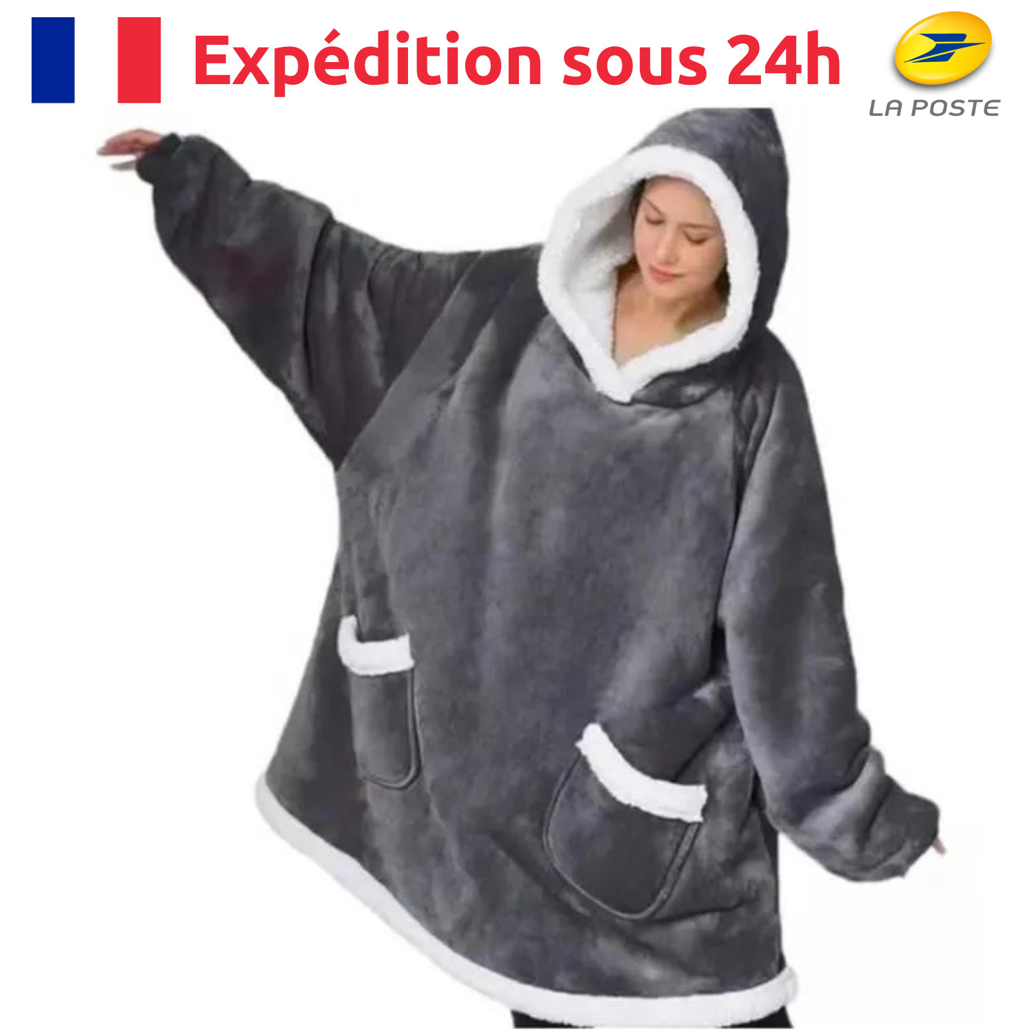Plaid a Capuche Femme Homme Confortable Chaud en Microfibre avec Manche et Poche