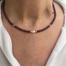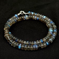 Beau collier homme femme 18" fait main en perles de pierres précieuses rondes...