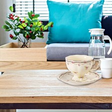 Ensemble De Service En Céramique 5 Pièces Avec Plateau En Bois DFH