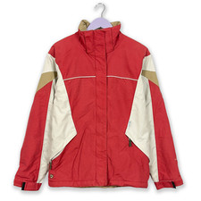 Veste de ski Columbia Taille Petit , pour s'adapter 38 " poitrine Veste de ski Columbia Titanium. Veste blanche, avec bordure noire et rouge. Devant zippé, avec rabat-tempête à boutons-pression et fentes latérales zippées. Doublé polaire, avec jupe pare-neige interne. Trois poches extérieures zippées, deux poches intérieures, poignets velcro et ourlet élastique Condition - Quelques petites marques sur la manche, et la capuche manque, sinon excellent état d'usage avec légères usures générales Tissu - Extérieur en nylon Mesures : Taille - Petit Taille de l'étiquette - S Largeur d'épaule - 19 » Longueur de manche intérieure - 24.5 Longueur de manche extérieure - 26 Couture à couture de mesure thoracique - 21 » Longueur - 28.5 » .