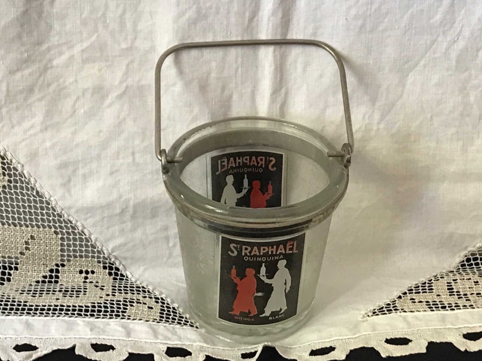 Ancien seau à glace/glaçons publicitaire, en verre, St Raphaël QUINQUINA