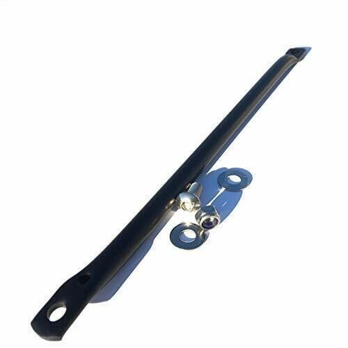 Support arrière de remplacement Brompton, support arrière complet avec écrous et rondelles. Le support de support arrière Brompton relie le porte-bagages arrière au cadre - il s'agit d'un seul support arrière avec fixations supérieures. Longueur : 230 mm en NOIR.