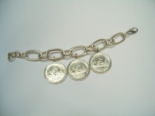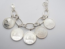 Bracelet semi-rigide en argent 925 avec pièce de 500 lires en argent 835 millième série "Quadriga" Longueur : réglable de 18 cm à 21 cm. Poids : 55 g. Pièce : 500 lires en argent 835 ; poids 11 g. Fermoir mousqueton. Créé en Italie par des artisans italiens. L'argent n'est ni traité ni chromé afin de ne pas provoquer de problèmes d'allergie. Il est marqué de cachets d'État qui certifient la finesse de l'argent et de l'entreprise de fabrication italienne. Attention : le bracelet est neuf et en parfait état, mais la pièce a circulé, donc même si elle a été polie, elle peut présenter quelques petits signes dus à l'utilisation. Il est envoyé avec un élégant coffret cadeau et un certificat de garantie. demander le total avant de payer Paiements acceptés Frais d'expédition internationaux "Br50.