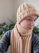 Bonnet et écharpe fait main au crochet pour une femme ou une fille, en laine