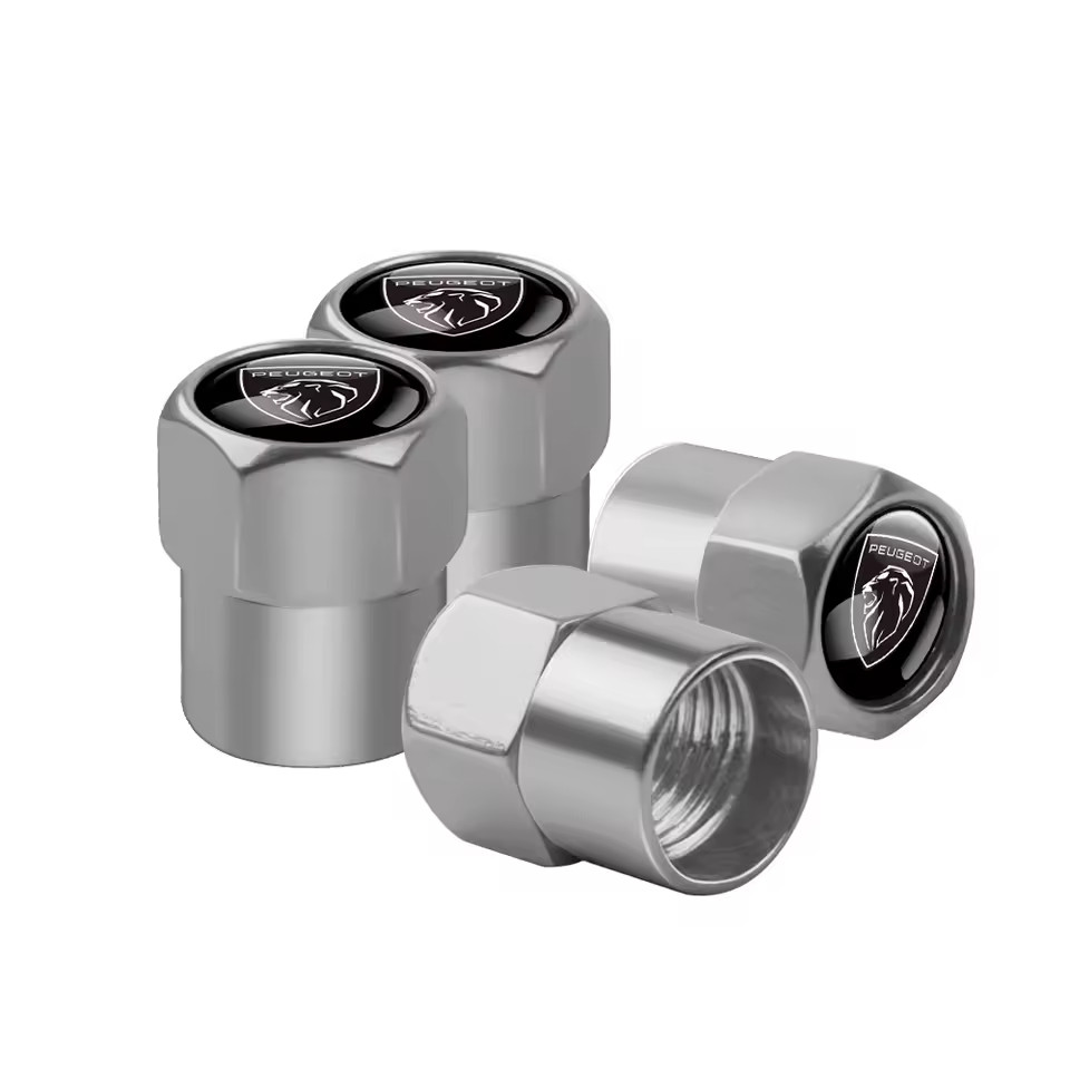 4x Capuchons Bouchons de Valve de Pneu Alu Peugeot Noir Argent