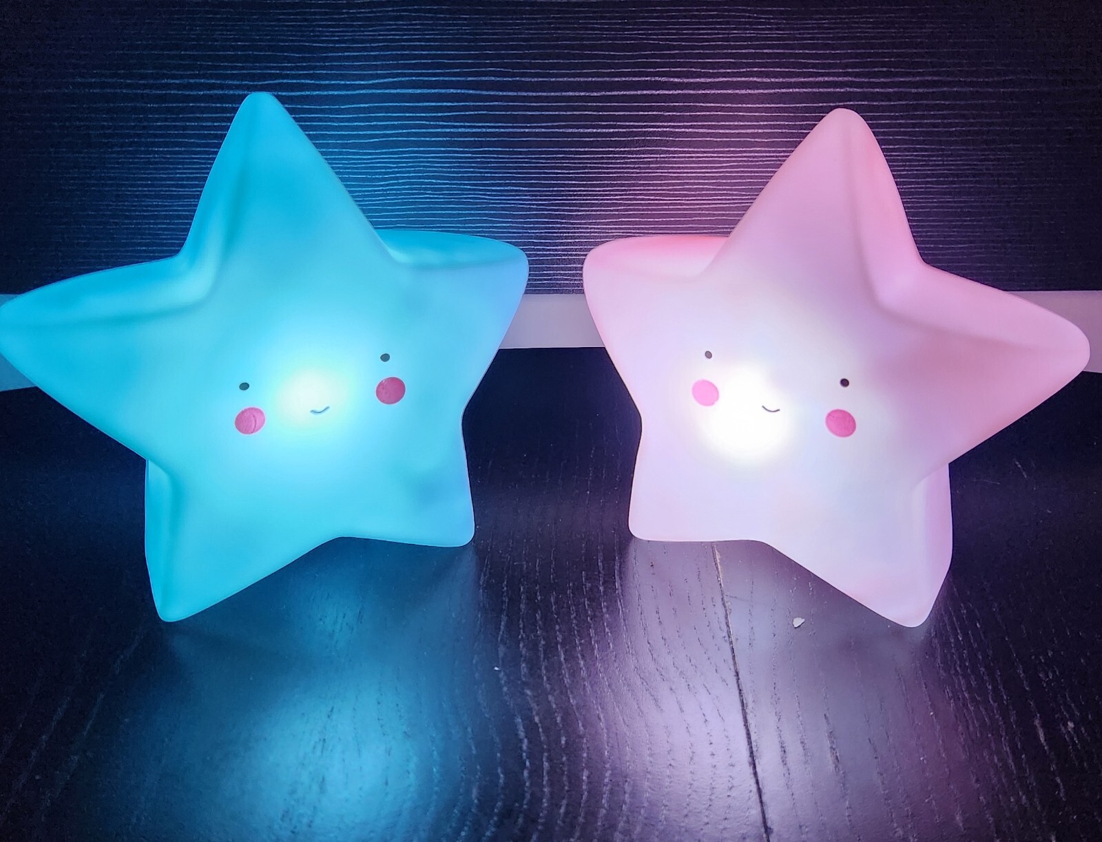 Lot de 2 Veilleuses LED Étoiles – Rose & Bleu – Piles Incluses – Lampe Nuit Bébé