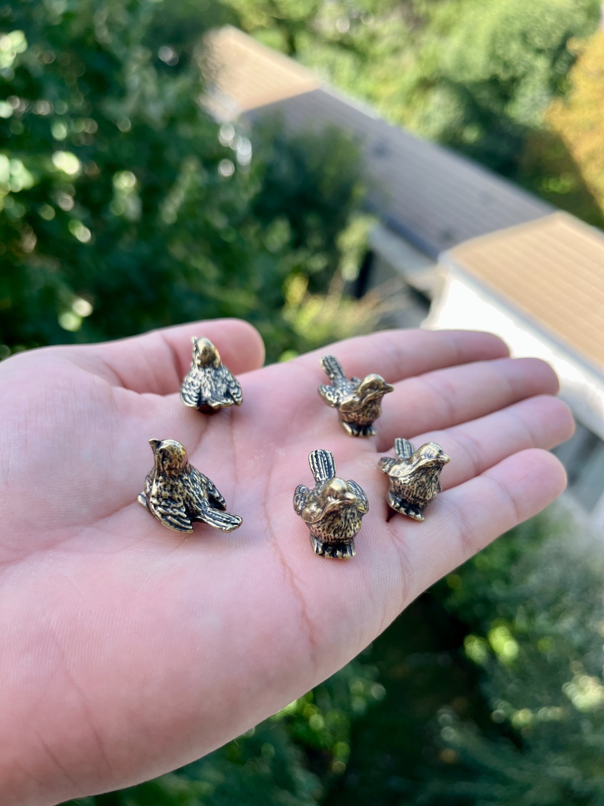 Set of 5 Mini Bronze Bird Figurines – Vintage Sparrow Figurine