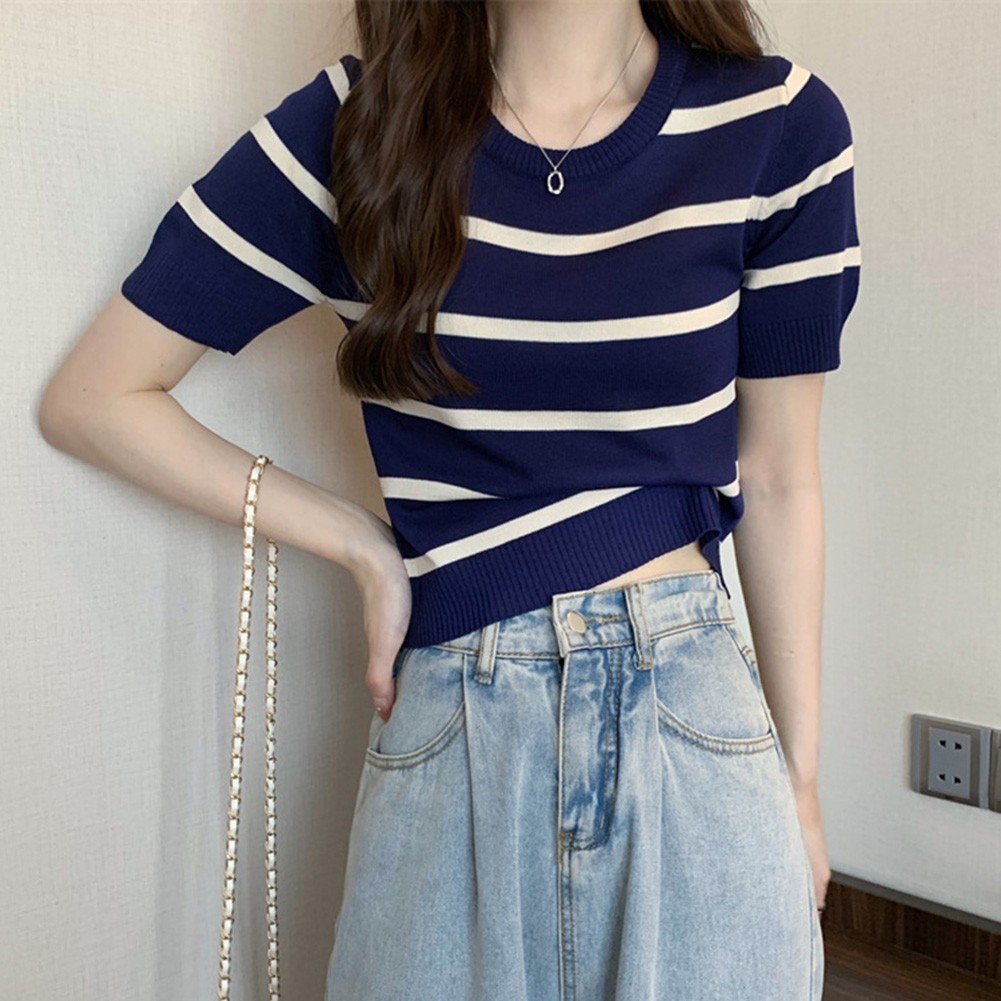 T-shirt femme coupe slim manches courtes rayé décontracté style mode été