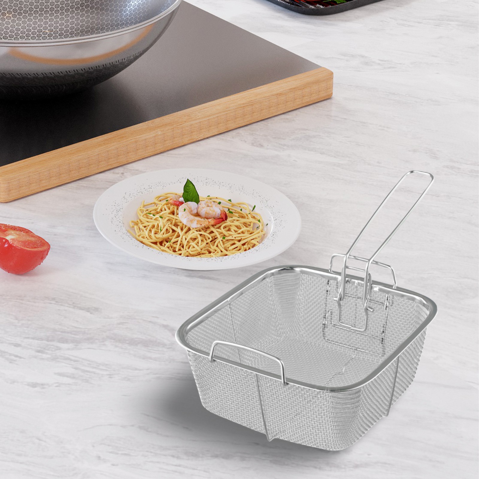 Panier à frire en acier inoxydable de taille pratique disponible en 20*20cm et