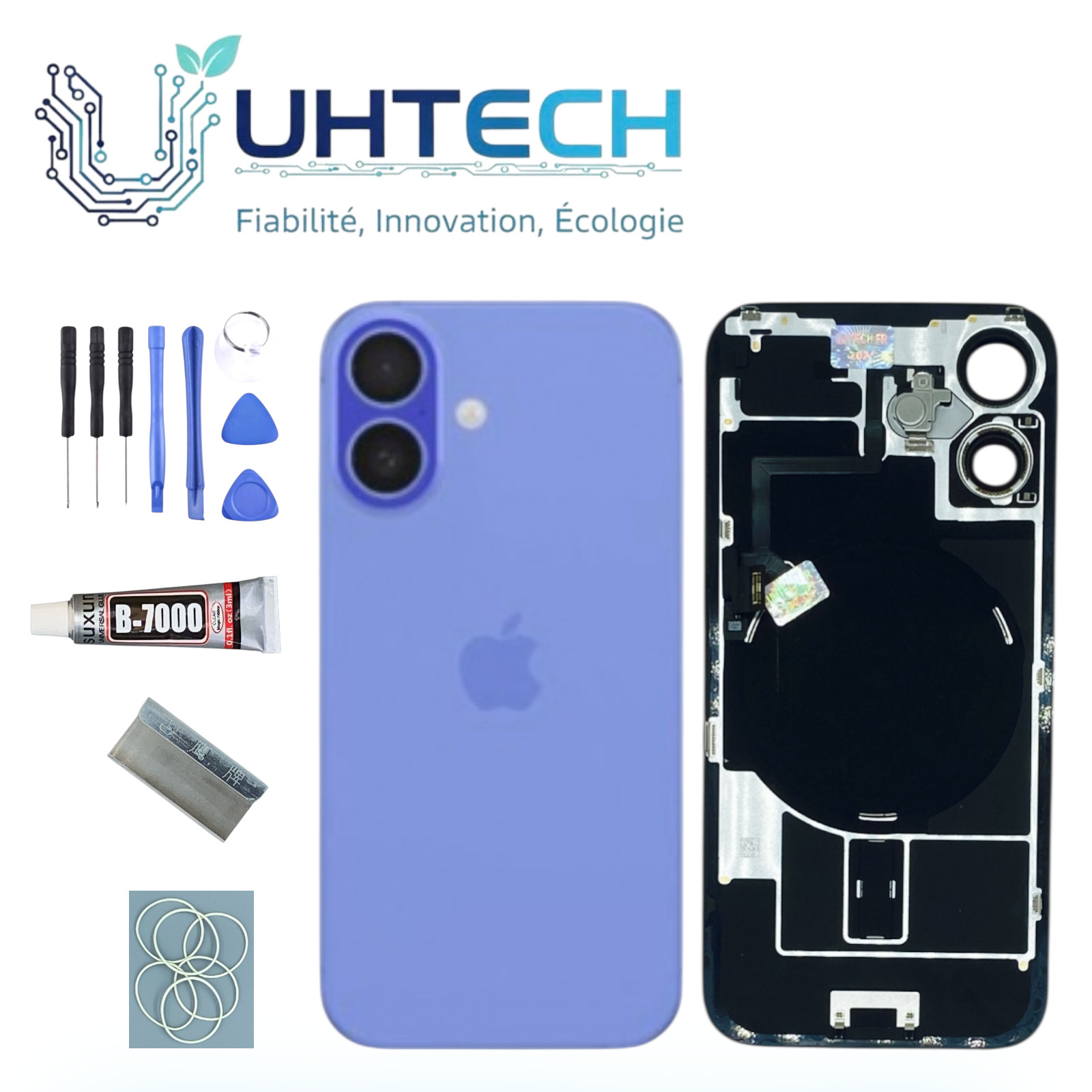 Type de Pièce : Vitre Arrière / Cache Batterie, incluant les découpes pour les caméras. Qualité : Origine Démontée. Sa qualité est Origine Démontée. US : Back Glass for iPhone 16 Ultramatine- Pulled original parts.