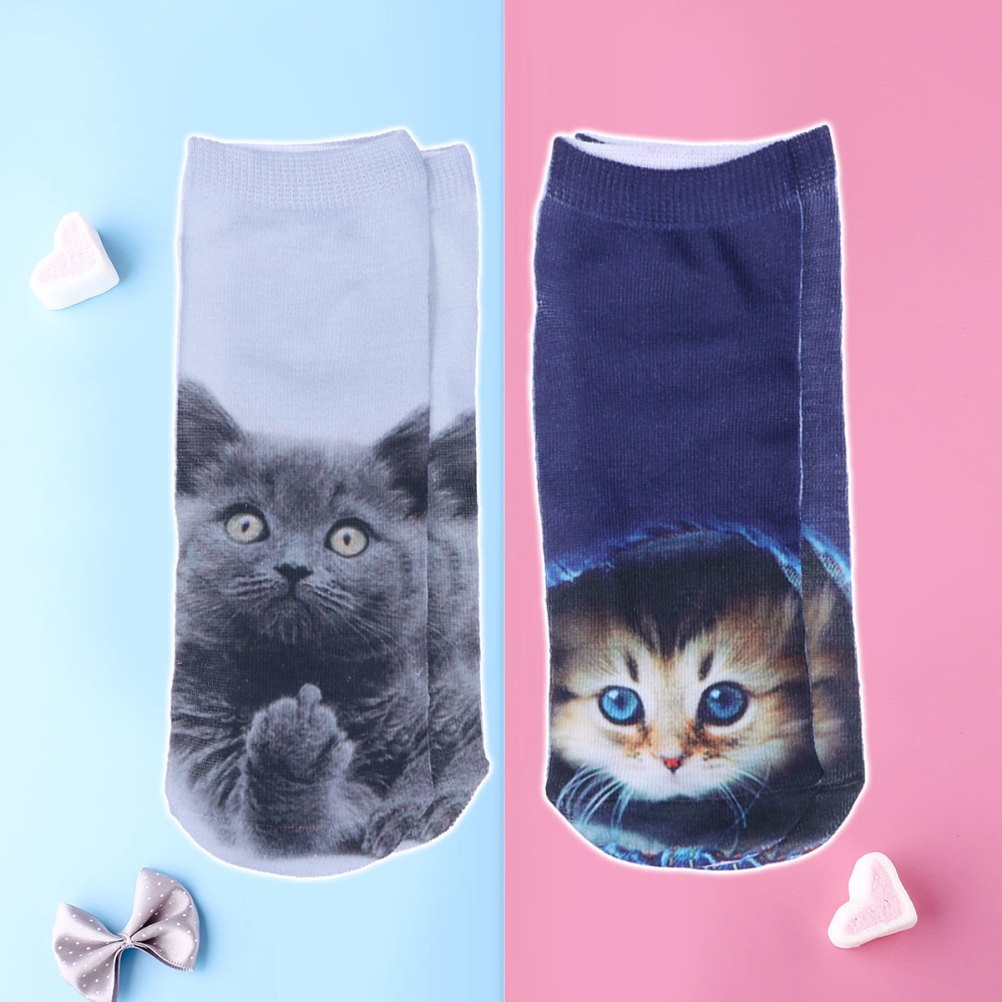 2 paires mode 3D chat imprimé femmes chaussettes décontractées unisexe basse