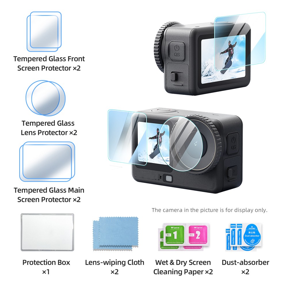 Protection d'écran en verre trempé 9H résistant aux rayures pour DJI OsmoActi