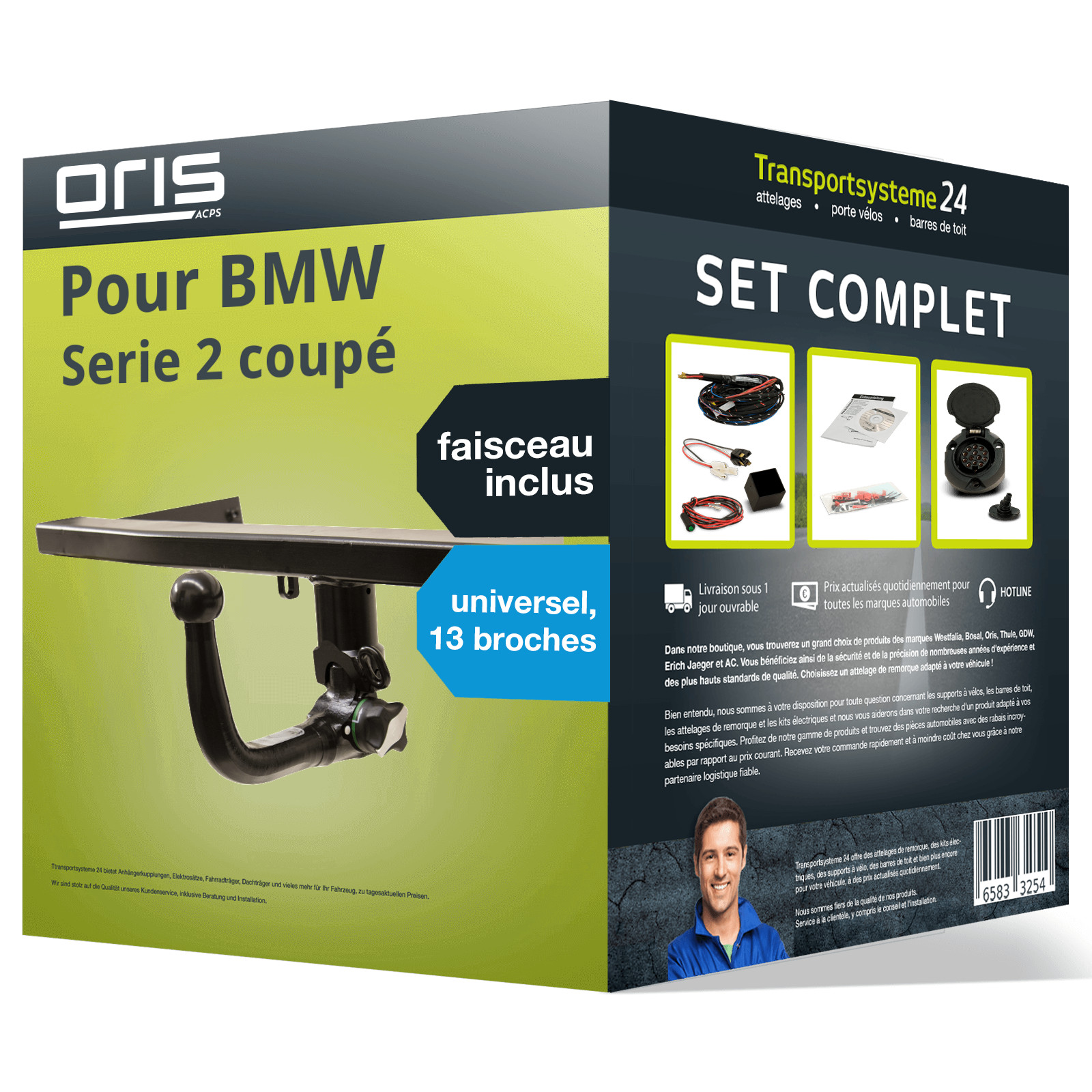 PACK COMPLET pour BMW Serie 2 coupé 10.2012 - 07.2021, composé d'un attelage rotule démontable Oris et d'un faisceau 13 broches universel TowTec. D’autres informations produit importantes consultables dans la notice de montage - veuillez cliquer sur le lien!.