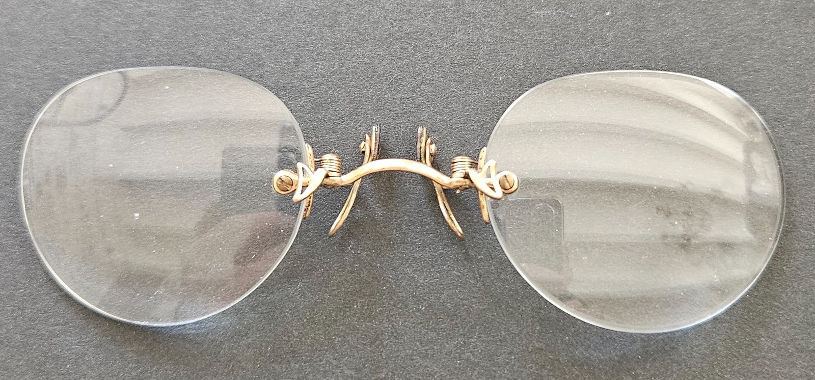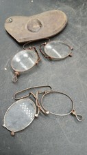 Ancienne paire de lunettes, lorgnons pince nez avec son étui.
