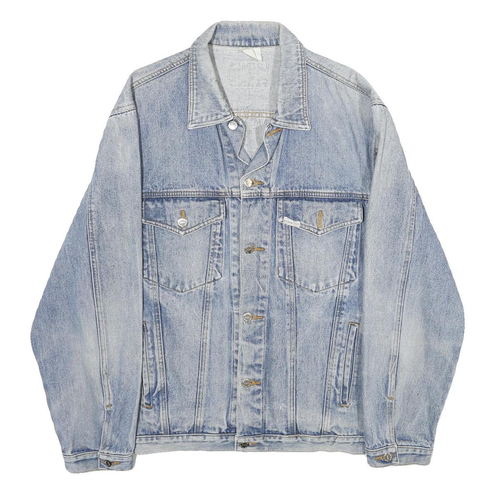 Cette veste Norwiss pour hommes présente un aspect denim bleu classique avec un délavage légèrement délavé et des fermetures à boutons métalliques sur le devant. Il possède deux poches poitrine à rabat boutonnées et poches latérales, ainsi qu'une petite étiquette en tissu griffée sur la poche poitrine gauche. Le tissu denim est en coton doux mais résistant, offrant confort et respirabilité. La veste s'adapte à une grande taille avec une coupe classique régulière, conçue pour un usage décontracté et une superposition. Le dos comprend une étiquette tissée près du cou avec la marque « Norwiss Basic The Jeans ». Le col est pointu et les manches sont longues avec des poignets boutonnés. Cette veste d'inspiration vintage est polyvalente pour un usage quotidien et se marie bien avec diverses te.