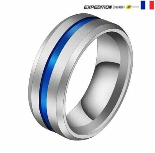 Bague Anneaux Ring en tungsten pour homme Argent Bleu Modèle 56