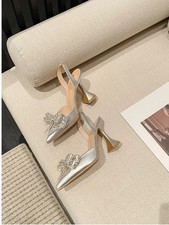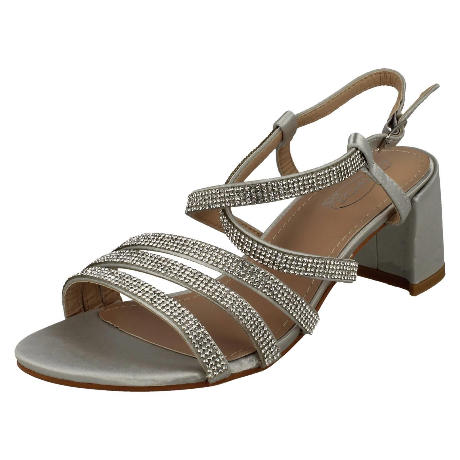 "F12037" par Spot On Sandales à lanières contemporaines Satin doux avec détails en strass Talon bloc de 7 cm.