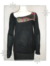 🌼 Tee Shirt Noir Bi Matière à Bretelles et Encolure Brodée-Taille XS- Promod