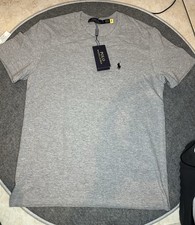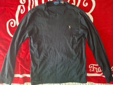 Polo Ralph Lauren Shirt Homme M Bleu Marine Coton Logo Poney Brodé Custom Coupe