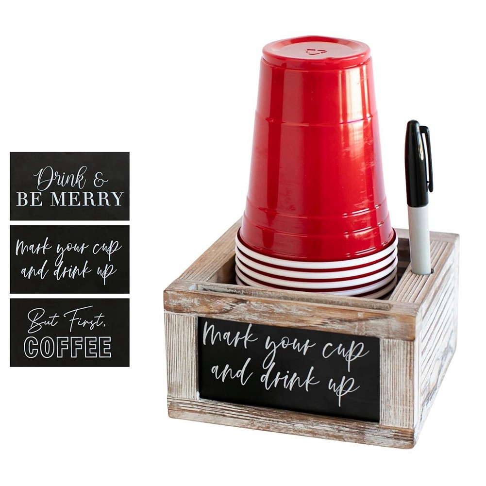 Porte-Gobelet en Bois avec Inscription « Marquez Votre Tasse et Buvez » - O2596