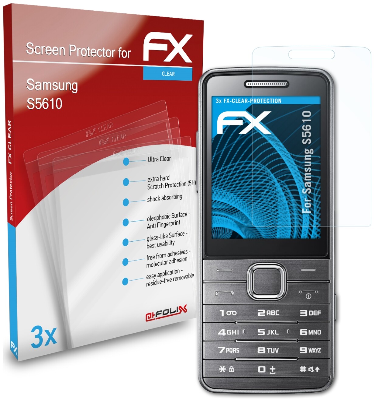 Ultra-transparent et à revêtement dur: atFoliX 3 x FX-Clear Protecteur d'écran pour Samsung S5610 - Made in Germany! Expédié et vendu par @FoliX - Original et directement du fabricant! Accessoires de montage inclus: chiffon de nettoyage, outil d'application (racloir), Lien aux instructions de montage en plusieurs langues (incl. Vidéo Assemblée).