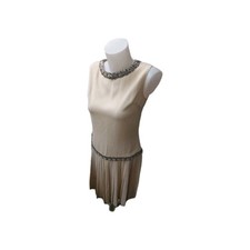 Jolie robe de cocktail des années 60. Style mod. Zip et crochet au dos. Matière : Mousseline et satin. Nettoyée avec soin et délicatesse. Longueur totale : 83cm. Hanches : 80 cm - 118 cm (évasée).