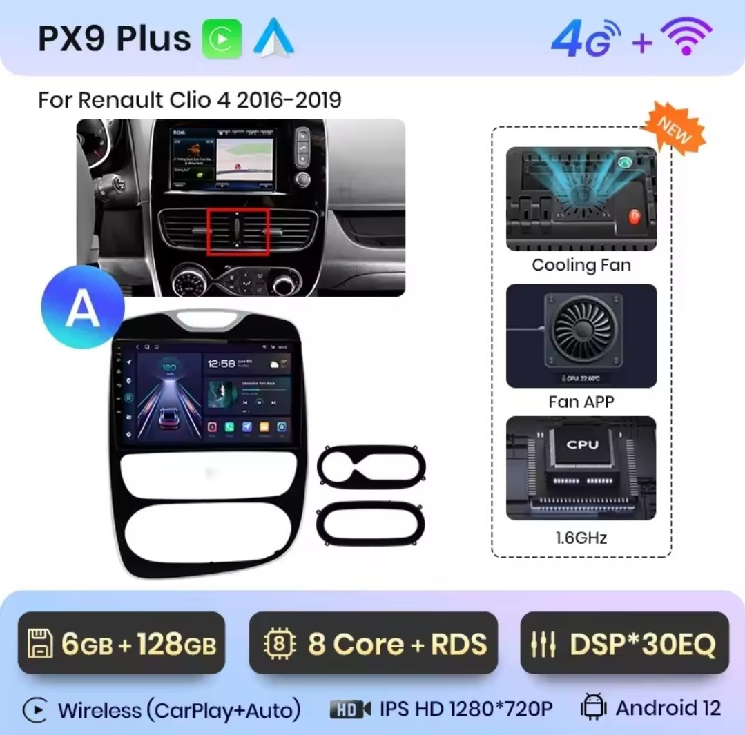Radio 2 DIN Android 13 pour Clio 4 De 2016 à 2019 6 Go de bélier 128 Go de mémoire interne Bluetooth Apple Carplay Wireless Android Auto Wireless Possibilité d'insérer une carte SIM Le kit comprend tout ce dont vous avez besoin pour l'installation Compatible avec les commandes du volant 8 cœurs Navigation avec des cartes mises à jour Lien de miroir Écran de 10 pouces Masque et câblage pour l'installation inclus dans le lit.
