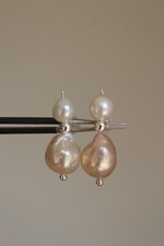 boucles d'oreilles clous en perles de culture naturelles plaqué or 14k