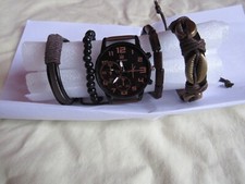 Magnifique MONTRE à QUARTZ HOMME avec date /BRACELET en SIMILI CUIR NEUF