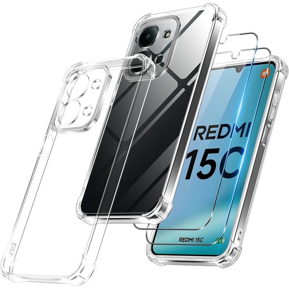 Coque Silicone pour Xiaomi Redmi 15C Note 15 4G/5G 14 Pro 13 + 2 Verres Trempés