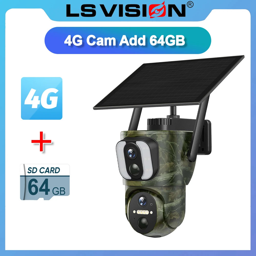 LS VISION 8MP Double Écran Caméra De Sécurité Solaire 4K 4G/Wif Moniteur Solaire Caméra Détection PIR Étanche Caméras De Chasse À La Faune. connectivité 4G. Caméra 4K 8MP à suivi humanoïde. Caméra PTZ à double objectif 4K wifi/4G avec projecteur à batterie solaire.